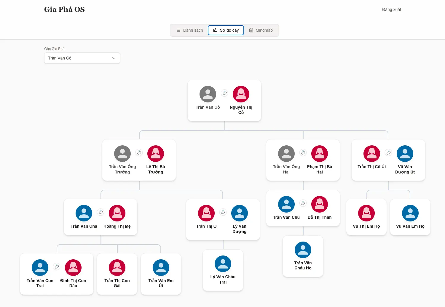 Và đặc biệt khi số lượng người tăng lên, sơ đồ cây bắt đầu rối, nhất là trên mobile. Càng cố hiển thị đầy đủ, giao diện càng khó kiểm soát.